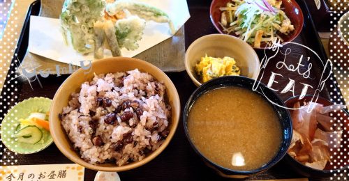 オーソドックスな丸餅と具無しのお汁に山菜の天ぷら、お赤飯とどれもとても美味しく頂きました!